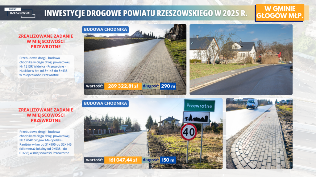 W miejscowości Przewrotne (gmina Głogów Małopolski) zrealizowano dwa ważne zadania drogowe, które znacząco poprawiły bezpieczeństwo oraz komfort poruszania się pieszych.