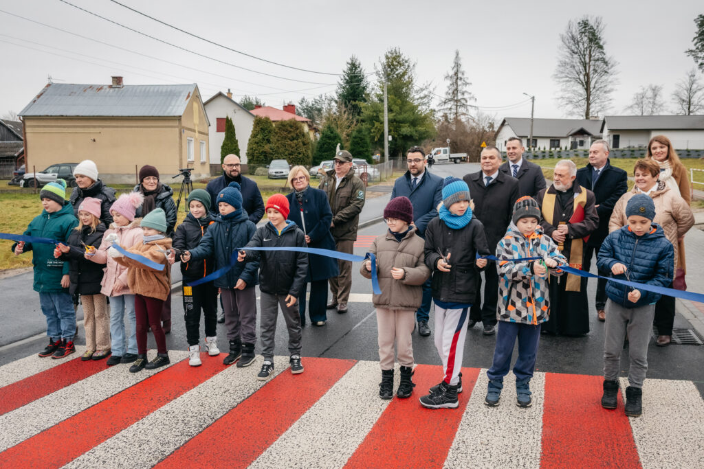 Szczególny akcent wydarzenia stanowił udział uczniów Szkoły Podstawowej nr 2 w Głogowie Małopolskim, którzy jako pierwsi symbolicznie przecięli wstęgę, podkreślając, że to właśnie bezpieczeństwo najmłodszych było jednym z głównych celów inwestycji.