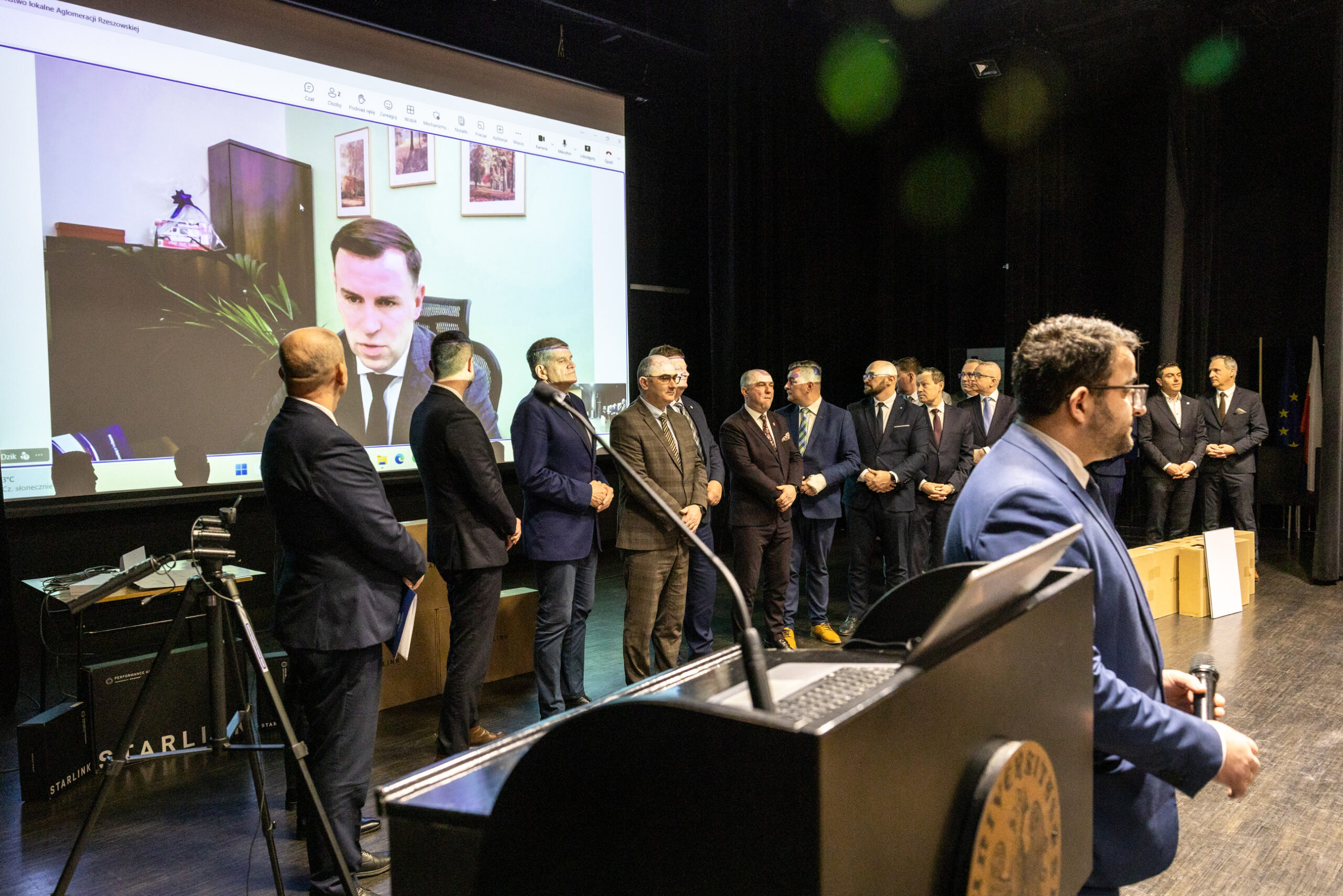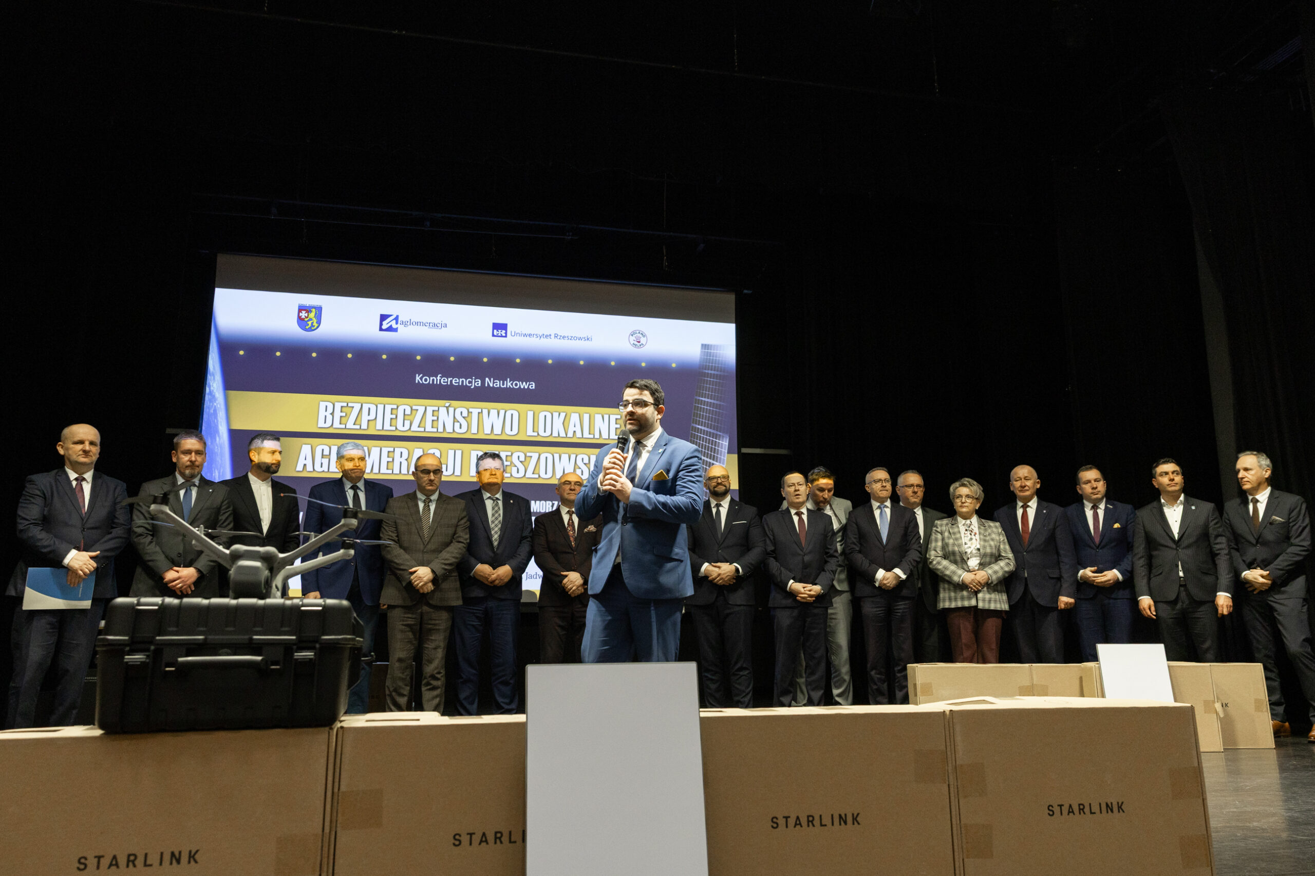 Jednym z najważniejszych punktów konferencji było symboliczne przekazanie systemów łączności satelitarnej Starlink przedstawicielom samorządów Aglomeracji Rzeszowskiej. Starosta rzeszowski dr Krzysztof Jarosz podkreślił, że sprawna komunikacja jest jednym z podstawowych warunków bezpieczeństwa mieszkańców.