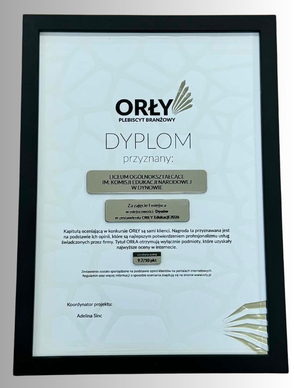 Już po raz 5 Liceum Ogólnokształcące im. Komisji Edukacji Narodowej w Dynowie znalazło się w gronie laureatów plebiscytu „ORŁY EDUKACJI”, zdobywając w tym roku ocenę 9,7 w 10-stopniowej skali!